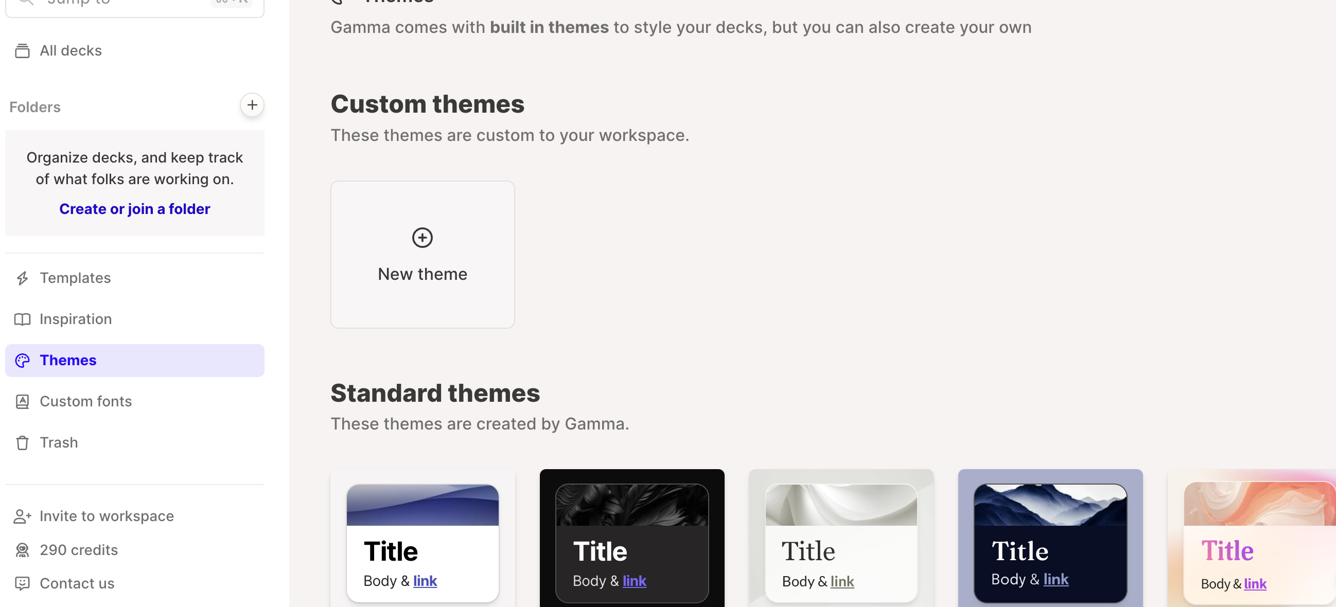 내 워크스페이스에 들어가면 그동안 작업했던 내용들이 다 저장이되고, 커스텀 테마와 폰트를 가져와서 저장시킬 수 있습니다.